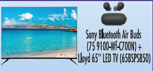 2 Sony Bluetooth Air Buds - 75 9100-Wf-C700N + Lloyd 65 LED TV 65BSPS850
