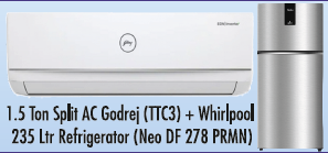 2 1.5 Ton Split AC Godrej TTC3 + Whirlpool 235 Ltr Refrigerator Neo DF 278 PRM