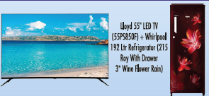 1 Lloyd 55 LED TV 55PS850F + Whirlpool 192 Ltr Refrigerator 215 Roy With Drawer 3 Wine Flower Rain
