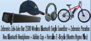 2 Zebronics Zeb-Juke Bar 2500 Wireless Bluetooth Single Soundbar + Zebronics Paradise Neo Bluetooth Headphone + Adidas Cap + Herclules E Cycle Montra