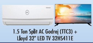 1 1.5 Ton Split AC Godrej TTC3 + Lloyd 32 LED TV 32HS411E