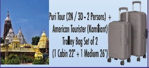 4 Puri Tour (2N - 3D) 2 Person + American Tourister Trolley Bag - Set of 2 (1 Cabin + 1 Medium)