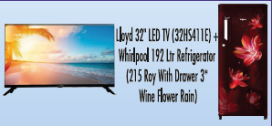 3 Lloyd 32 LED TV 32HS411E + Whirlpool 192 Ltr Refrigerator 215 Roy With Drawer 3 Wine Flower Rain