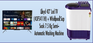 2 Lloyd 43 Led TV 43FS411H + Whirlpool Sup Soak 7.5 Kg Semi-Automatic Washing- Machine