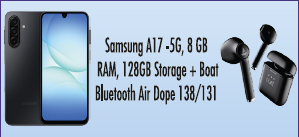 3 Samsung A17 5G, 8 GB RAM, 128GB Storage + Boat Bluetooth Air Dope 138 131