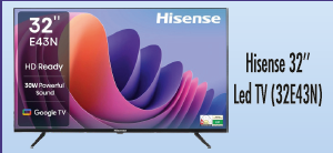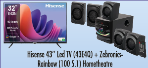 1 Hisense 43'' Led TV 43E4Q + Zebronics-Rainbow 100 5.1 Hometheatre