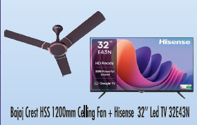 3 Bajaj Crest HSS 1200mm Celling Fan + Hisense 32'' Led TV 32E43N