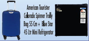 2 American Tourister Colorado Spinner Trolly Bag 55 Cm + Blue Star 45 Ltr Mini Refrigerator