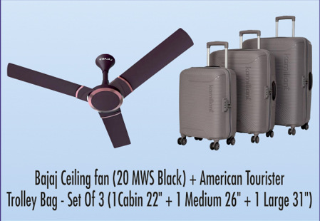 2 Bajaj Ceiling fan (20 MWS Black) + American Tourister Trolley Bag - Set Of 3 (1Cabin + 1 Medium + 1 Large)