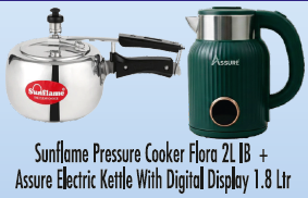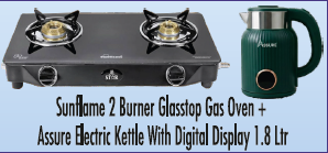 2 Sunflame 2 Burner Glasstop Gas Oven + Assure Electric Kettle With Digital Display 1.8 Ltr