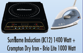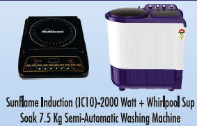 1 Sunflame Induction (IC10)-2000 Watt + Whirlpool Sup Soak 7.5 Kg Semi-Automatic Washing- Machine
