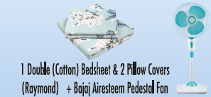 3 Double Cotton Bedsheet & 2 Pillow Covers (Raymond) + Bajaj Airesteem Padestal Fan