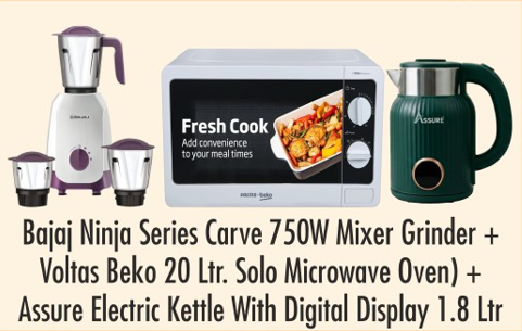 3 Bajaj Ninja Series Carve 750W Mixer Grinder + Voltas Beko 20 Ltr Solo Microwave Oven